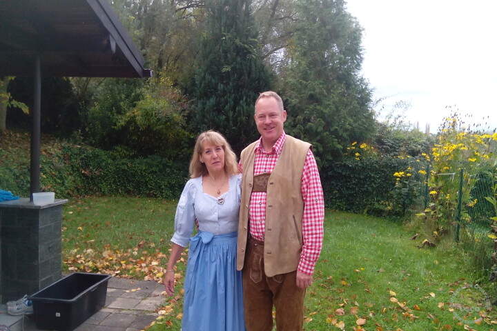 Diesmal wurden wir von unserer Dame vom Protokoll, Gabi im Dirndl, und unserem 1. Vorsitzenden, Frank in Lederhosen, mit typisch bayerischen Weißwürsten mit süßem Senf und Laugengebäck, Leberkäse und Obatzda sowie Weiß- und Oktoberfestbier verwöhnt. Am Nachmittag gab es noch Kaffee und selbst gebackenen Kuchen von den Vereinsmitgliedern.
