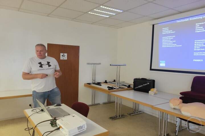 Der erfahrene Tauchmediziner analysierte Ursachen, Symptome und Behandlungsmöglichkeiten auf eine lebendige und fachgerechte Weise und bezog das Publikum aktiv in die Lösungsfindung mit ein. 17 Vereinsmitglieder nahmen an dem Seminar teil und zeigten großes Interesse an den Themen.
