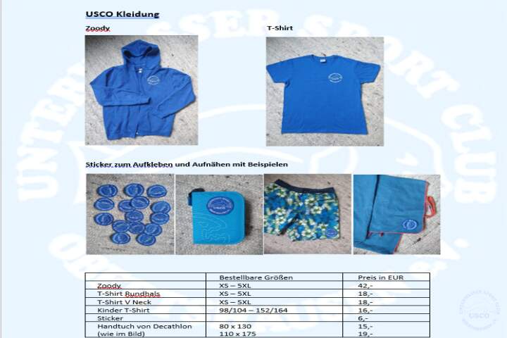 Bilder-GalerieWir sammeln in einer ersten Charge bis Ende Januar Eure Bestellungen. Bitte gebt mir Eure Bestellwünsche mit Größenangabe per USCO Mail Adresse organisation@usco.de oder per Signal Chat auf. Um zu verhindern, daß etwas verloren geht, schicke ich Euch immer eine Bestätigung.