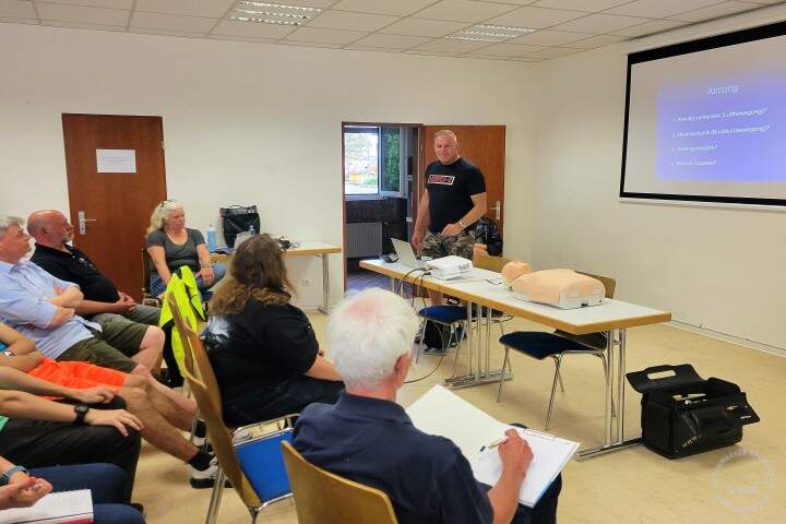 Das Seminar fand im städtischen Clubraum statt und behandelte verschiedene tauchmedizinische Problemstellungen, wie z. B. Dekompressionskrankheit, Barotrauma oder Hypothermie. Dr. Franz erklärte die Ursachen, Symptome und Behandlungsmöglichkeiten dieser Probleme auf eine lebendige und fachgerechte Weise und bezog das Publikum aktiv in die Lösungsfindung mit ein. 25 Taucher und Taucherinnen des USCO nahmen an dem Seminar teil und zeigten großes Interesse an den Themen. Im praktischen Teil des Seminars übten die Teilnehmer an einer Puppe die Herz-Lungen-Wiederbelebung (HLW), die eine lebensrettende Maßnahme - nicht nur - bei einem Tauchunfall sein kann. Dabei lernten sie u. a., wie man den richtigen Druck an der korrekten Position und im passenden Rhythmus ausübt. Das Seminar war eine gelungene Veranstaltung, die das Wissen und die Sicherheit der USCO-Mitglieder im Bereich der Tauchmedizin erhöhte. Die USCOs dankten ihrem Clubmitglied Jochen mit viel Applaus für eine spannende und informative Veranstaltung. Das einhellige Fazit lautete: "Zu wissen, dass man zur rechten Zeit richtig helfen kann, ist eine tolle Sache".